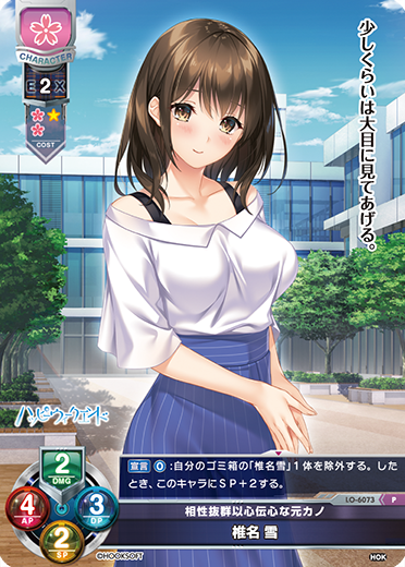 [宣言][0]:己方的垃圾箱的「椎名雪」1体除外.的时候,这个角色卡SP+2.